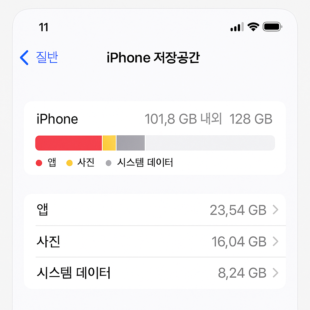 “저장공간 부족” 알림은 그대로 뜨는 상황