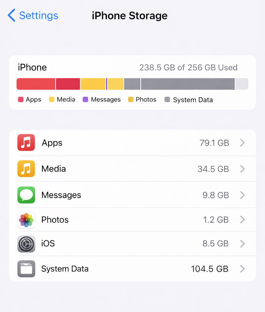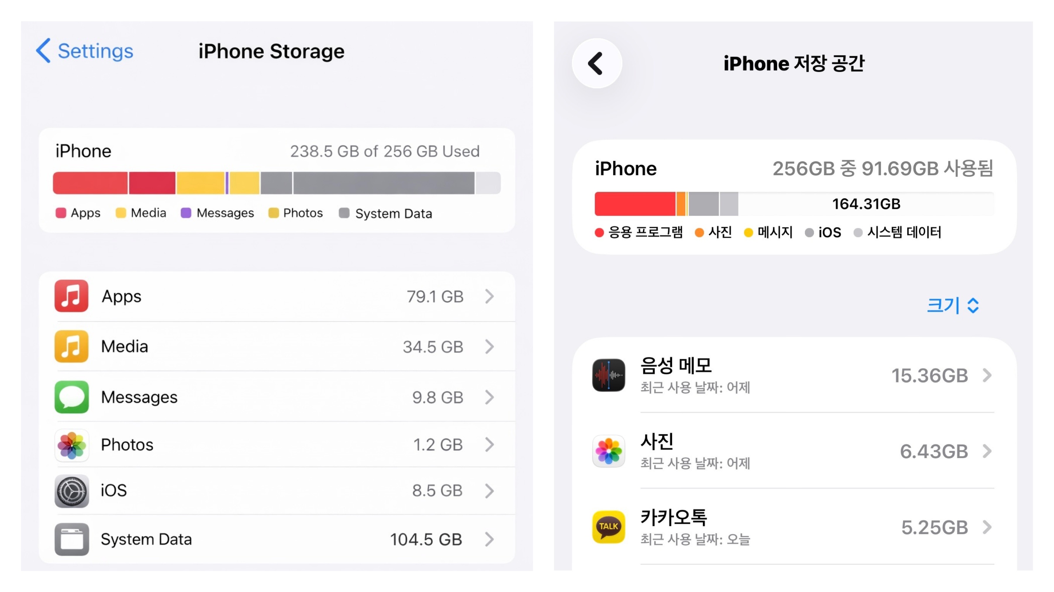 3. 설정 → 일반 → iPhone 저장공간 확인