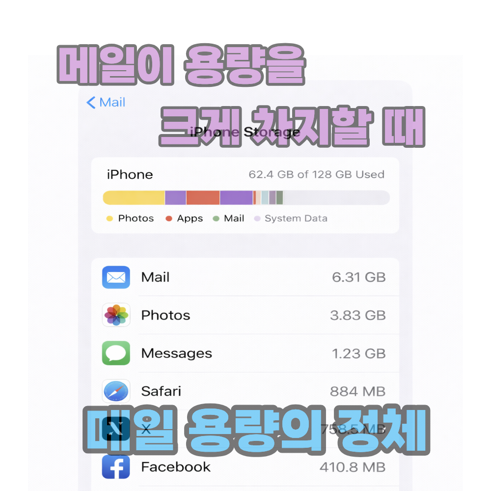 메일(Mail)이 사진보다 더 많은 용량을 차지하고 있으면 당황하게 됩니다.